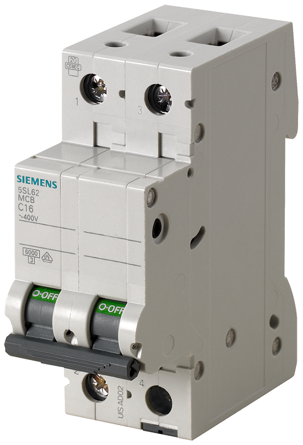Automático magnetotérmico 400V 6kA, 2 polos, C, 16 (5SL6216-7)