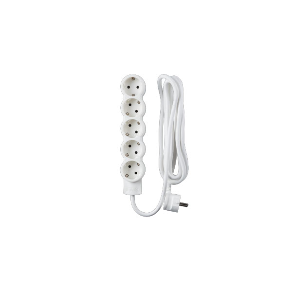 Bases múltiples estándar, Para conectar varios dispositivos equipados o no con toma de tierra: electrodomésticos clase I (aislamiento simple) o clase II (aislamiento doble), lámparas, PC, TV, equipo de música, etc., Extraplanas: pueden colocarse detrás de los muebles, Posibilidad de montaje mural con el accesorio incluido en el embalaje, Toma a 90º para conectar un transformador sin condenar otra toma, Con obturadores de protección para 10.000 maniobras, Cable de alimentación de 3m de 3, 1,5 mm2, Potencia máx. 3 650 W a 230 V, 5 x 2P + T