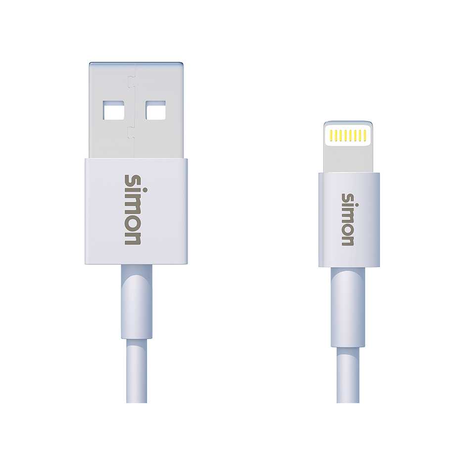 Cable de carga y transferencia de datos con conector Lightning a conector USB tipo A para dispositivos con sistema operativa iOS. Con el cable Lightning de Simon podrás conectar con total seguridad tus dispositvos ya que está certificado con el programa MFi. El programa MFi garantiza que el producto cumple con todos los requisitos de rendimiento establecidos por Apple. El cable Lightning presenta una longitud de 1 metro y ofrece una corriente de salida de 2,4 Amperios y una tasa máxima de transferencia de 10 Gbps.