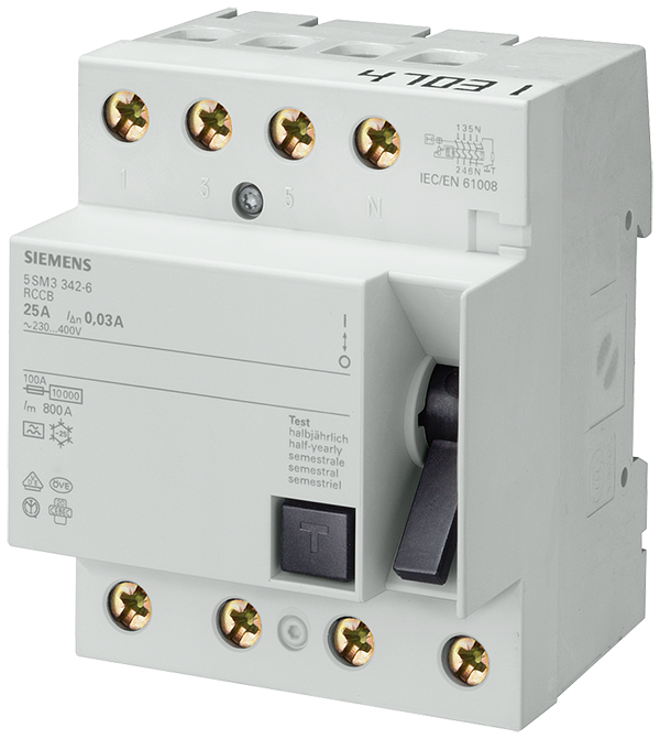 Interruptor diferencial, 70mm, clase AC, 4 mód., 4 polos, 125A, 30mA