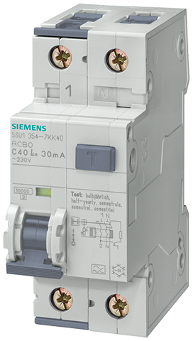 Interruptor diferencial combinado, 2 mód., tipo AC, p=70mm, 30mA, 10kA, 1P+N, C-6A