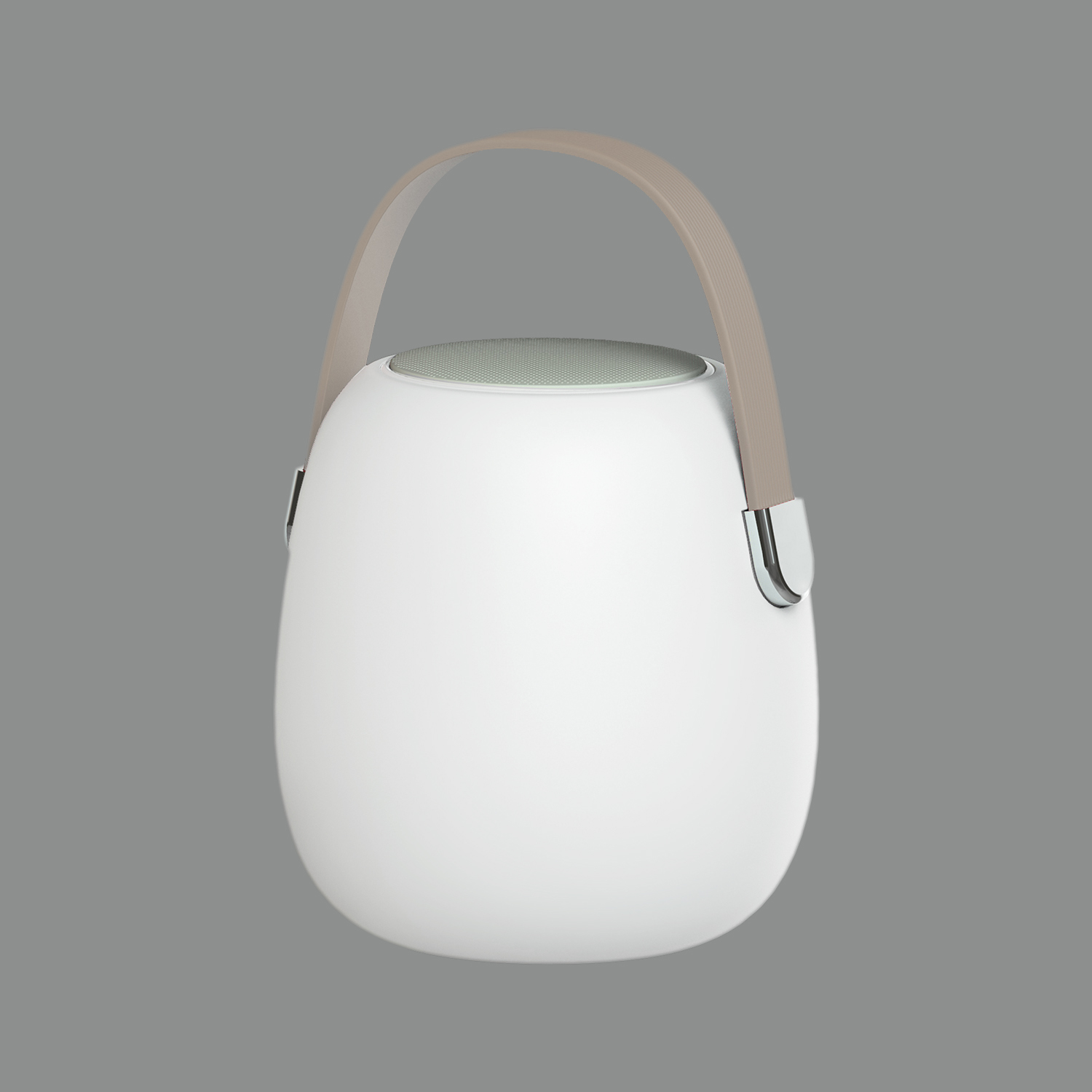 Take Me 8172 Sobremesa Opal/Beige. Cambia el color a tu gusto, es RGB LED 1x3W 180lm, con protección al agua IP44 CL.III. LED integrado, Regulable intensidad, Mando a distancia, Bluetooth, Con Altavoz 5W