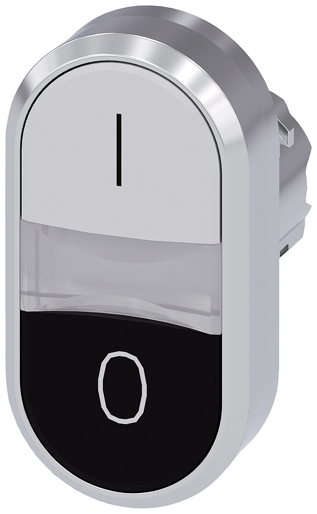 PULSADOR DOBLE ILUMINADO, 22MM, REDONDO, METAL, BRILLANTE, BLANCO: I, NEGRO: O, BOTONES, RASANTES,
