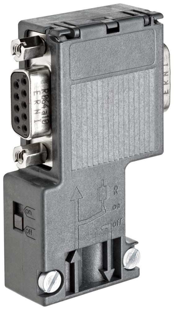 SIMATIC ET 200, conector para Profibus, hasta 12 MBit/s con salida de cable 90 grados, (ancho x alto x profundo): 15,8 x 64 x 35,6 mm, resistencia de cierre con función de separación, sin conector para PG