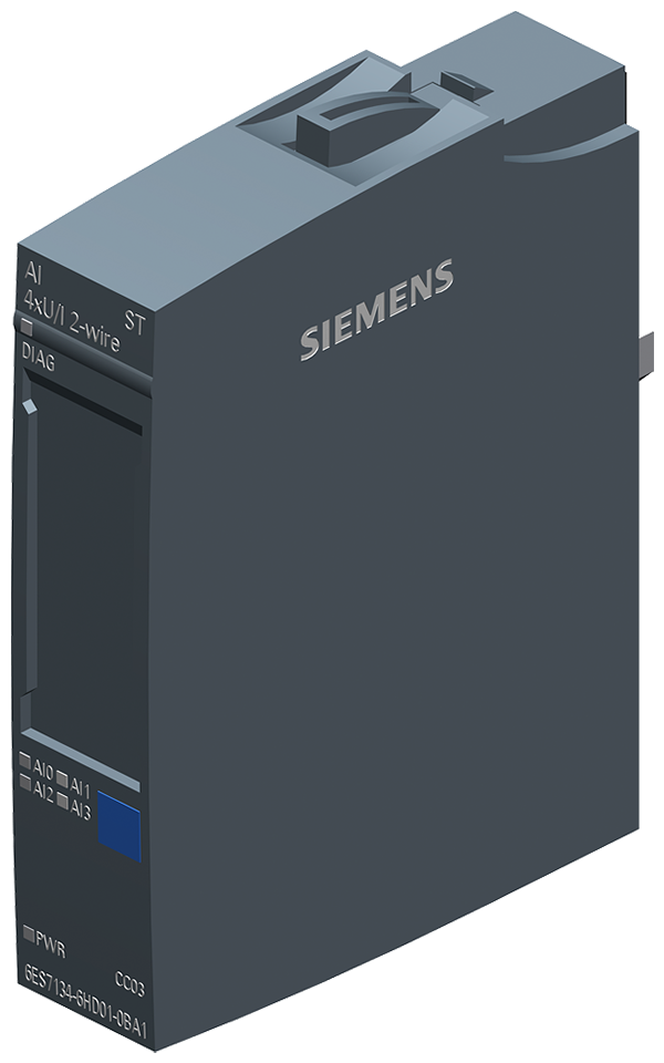 SIMATIC ET 200, 1 módulo electrónico de entradas analógicas para ET 200SP, 4 EA x U/I (tensión/corriente) a 2 hilos STANDARD. Apto para BaseUnit tipo A0, A1, código de color CC00, código color CC03, diagnóstico de módulo, 16 Bits, +/-0,3%. 1 unidad por paquete.