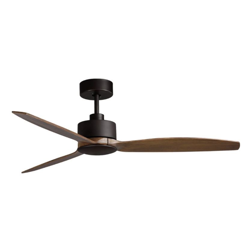 Ventilador con aspas de madera color oscuro y de diametro de 132cm y una potencia de 30W, 6 velocidades, temporizador y mando a distancia